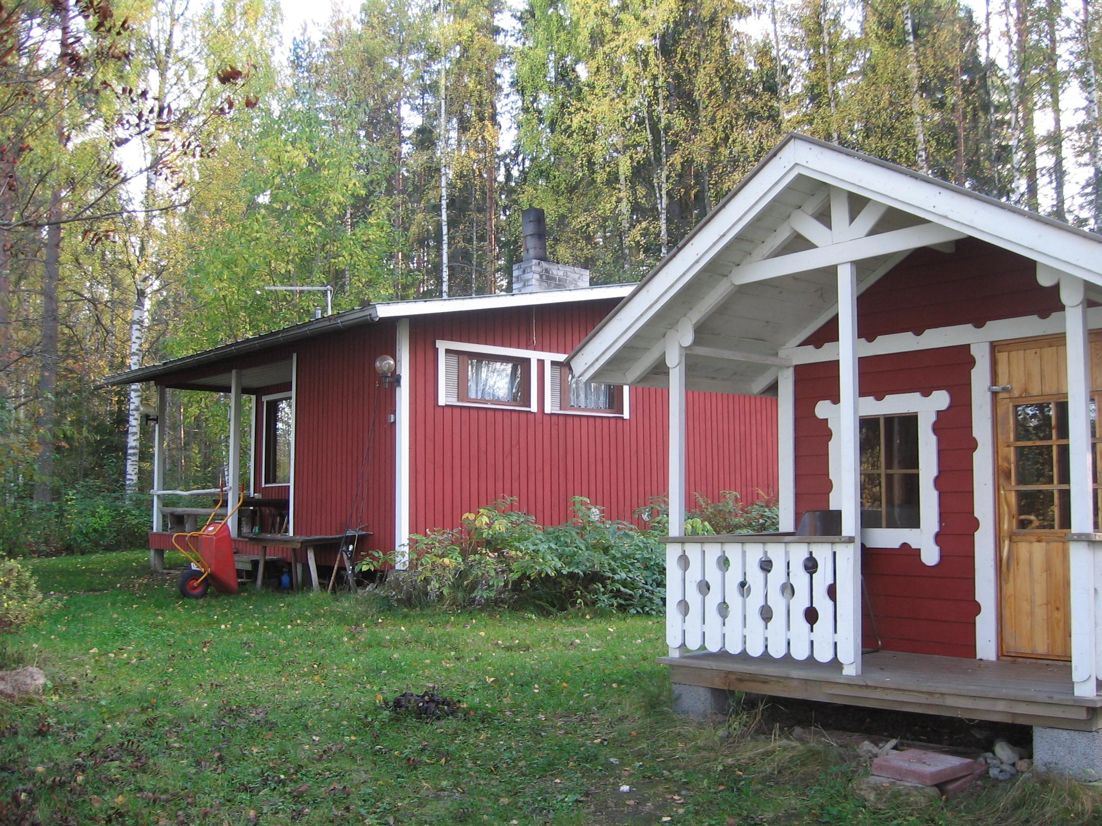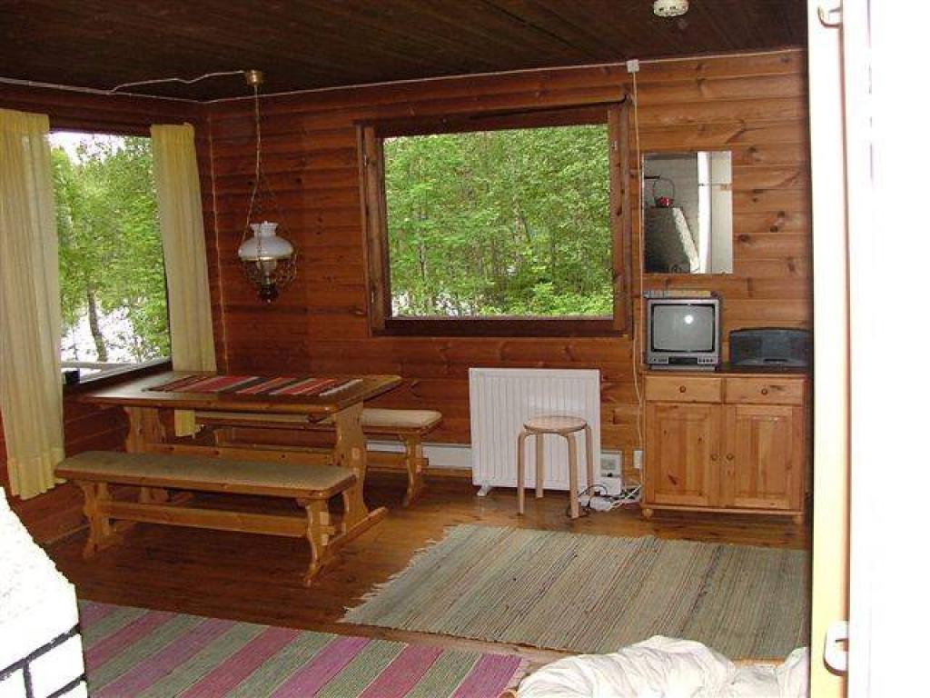 An atmospheric lakeside cottage (45 m2) with a lounge-cum-kitchen and an alcove.