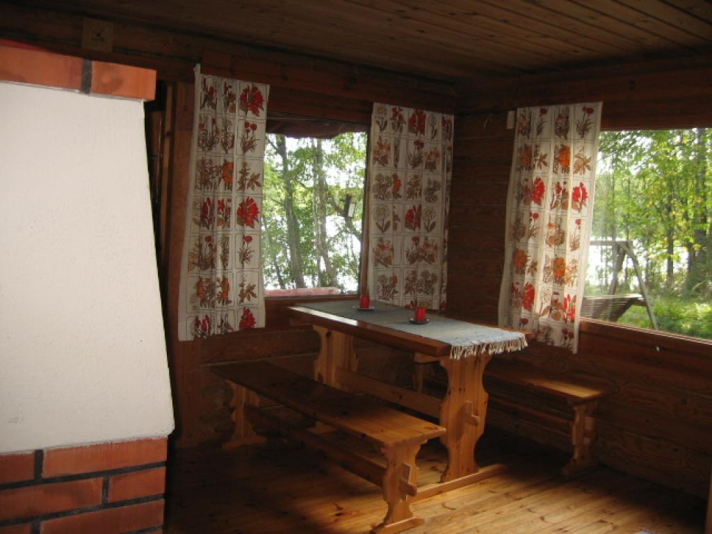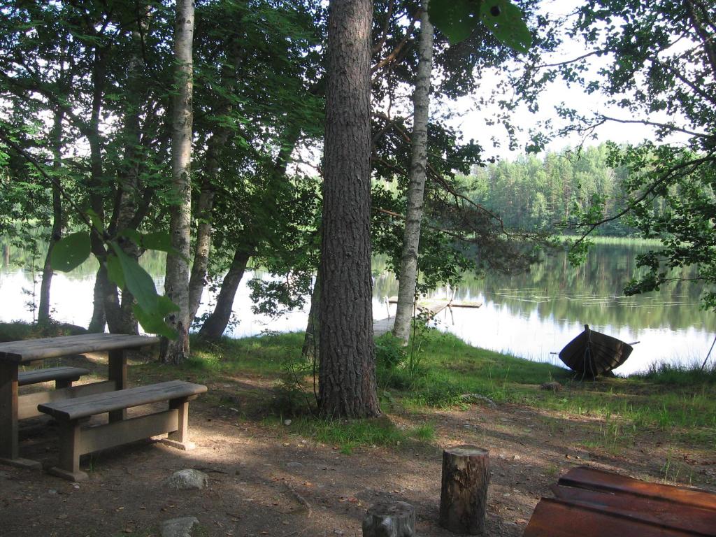 However, it is easy to go swimming from the jetty. The jetty is also a good place for fishing with a worm-baited hook and line. The cottage also has a arred wooden rowing-boat that can be used for fishing trips. The cottage has a sauna, changing room, lounge and terrace. The lounge has an open ireplace, a kitchen recess, a gas fridge and a gas hob. There is a bunk bed with a pull-out lower bed.Outside there is a garden table and benches, a swing bench, a barbecue, a well and a games area. There is also a barbecue hut close by which is available for hire by separate arrangement. No neighbours within sight distance. The cottage is modest, yet rather atmospheric with an idyllic setting.